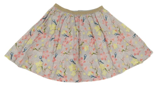 Sivá plátenná kolová sukňa s kvetmi a zlatým a pasom Y.F.K.