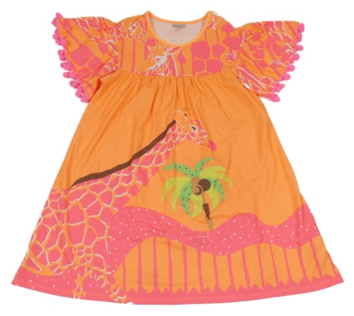Oranžovo-ružové šaty so žirafou Nanai