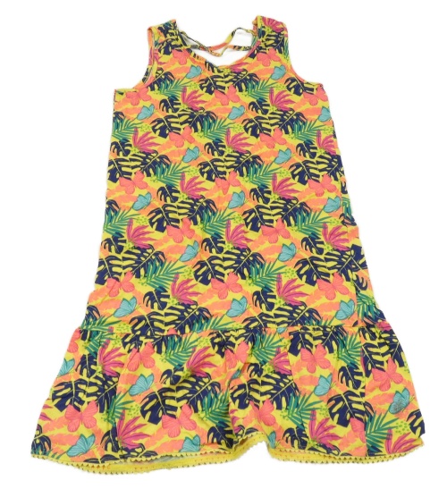 Žlto-farebné šaty s kvetinami a motýli