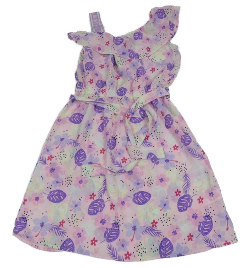 Svetloružové asymetrické šaty s lístečky a kvetmi a volánikom a opaskom YOUNG IDOLS
