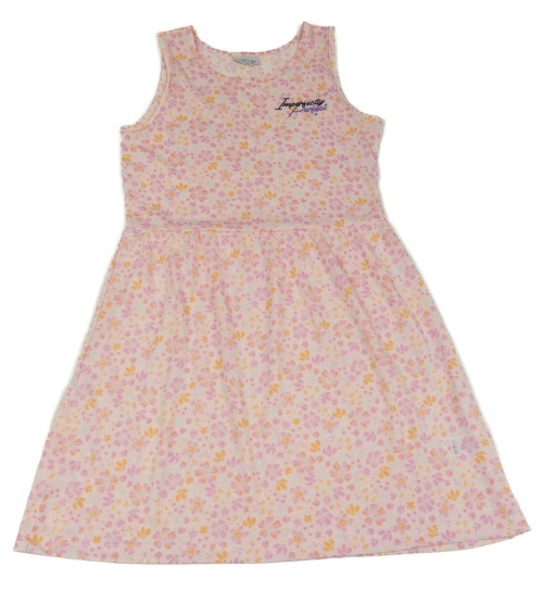 Svetloružová -oranžové kvetované šaty s nápisom