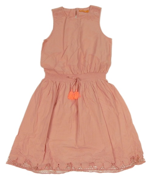 Broskvové plátenné šaty s kvietkami a čipkou STACCATO