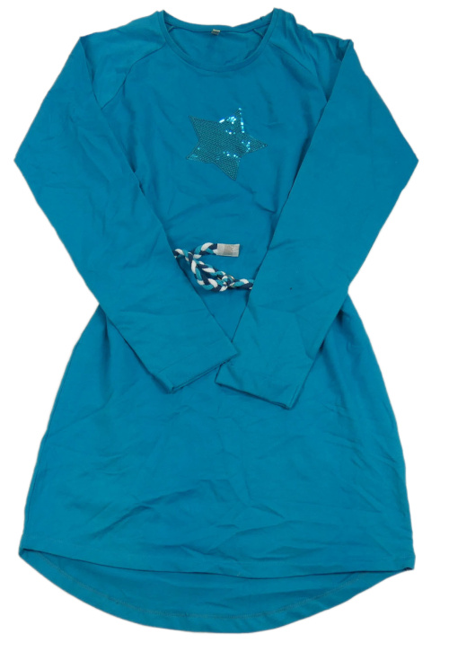 Modrozelené teplákové šaty s hvězdou z flitrů a opaskom Fitz