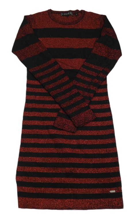 Červeno-čierne pruhované pletené trblietavé šaty