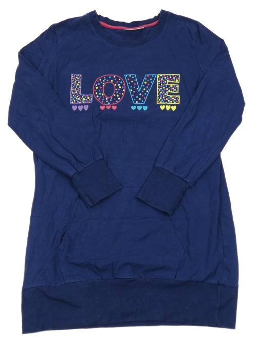 Tmavomodré teplákové šaty s nápisom a srdiečkami a vreckom bpc