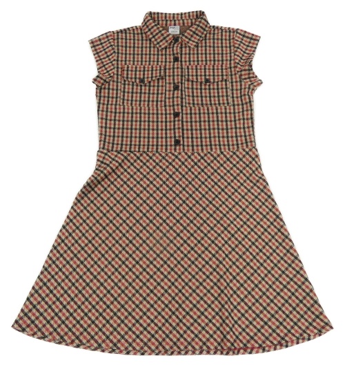 Béžovo-červeno-čierne kockované úpletové šaty s golierikom Page one young