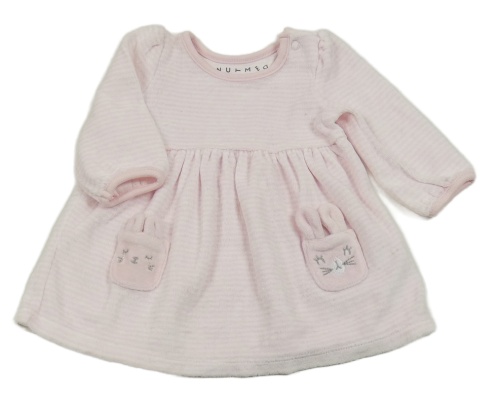 Svetloružová -biele pruhované zamatové šaty s vreckami s králikmi Nutmeg