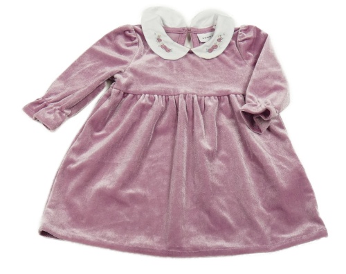 Ružové zamatové šaty s golierikom Name it