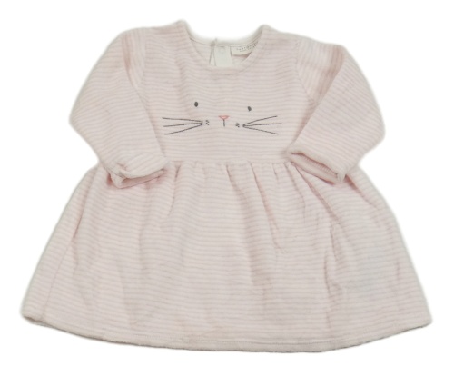 Bielo-ružové pruhované zamatové šaty s mačkou Next
