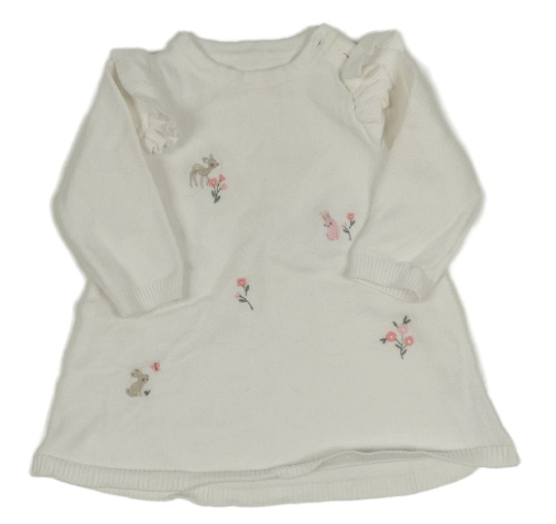 Biele svetrové šaty so zvieratkami a kvietkami Little Nutmeg