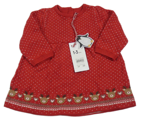 Nové - Červené vzorované pletené šaty so sobmi Mothercare