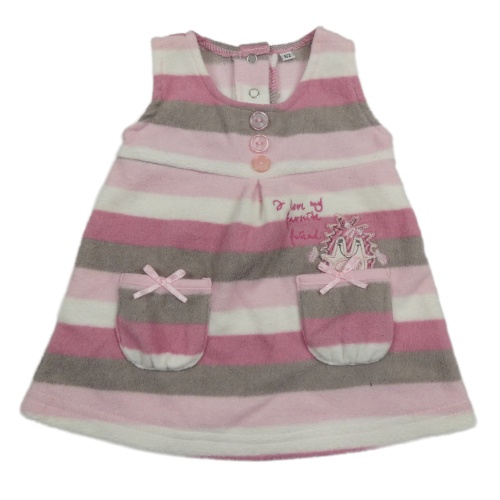 Ružovo-hnedo-biele pruhované fleecové šaty s ježkom