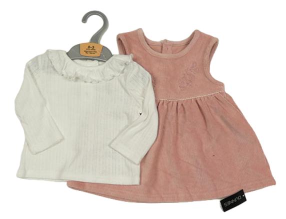 • Nové - 2set - Staroružové rebrované zamatové šaty s výšivkou květů + biele perforované tričko Dunnes