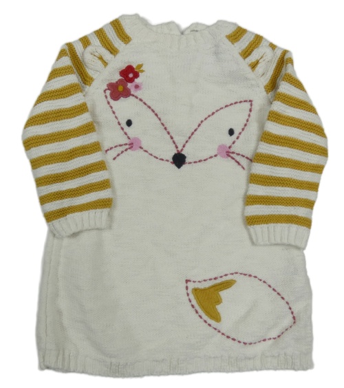 Biele svetrové šaty s pruhovanymi rukávy a líškou Tu