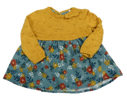 Okrovo-šedozelené šaty s kvetmi a mašlou