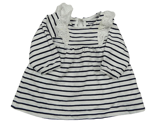 Bío-čierne pruhované teplákové šaty s volániky s madeirou Kiabi