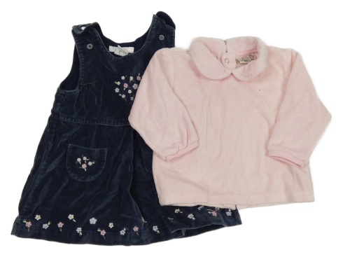 2Set - Tmavomodré sametovo/manšestrové šaty s kvietkami H&M + světlerůžová sametová mikina s límečkem