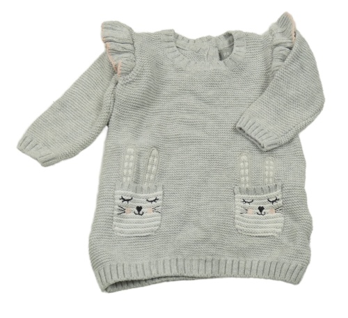 Sivé melírované pletené šaty so zajíčky/kapsami a volánikmi PRIMARK