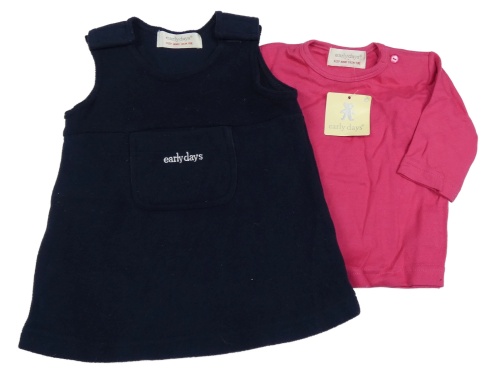 Nové - 2set - Tmavomodré fleecové na traké šaty s nápisem + fuchsiové tričko Early Days