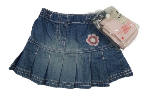 Nové - 2set- modrá rifľová sukňa s kytičkou+ ružové pruhované pančuchy Next