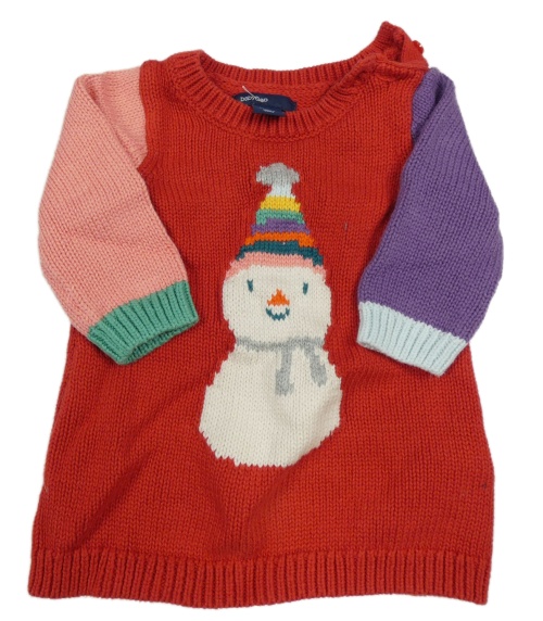 Červeno-fialovo-ružové svetrové šaty so sněhulákem GAP