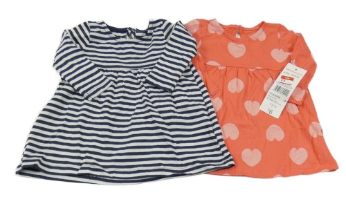 Nové - 2x - Šaty - Tmavomodro-bílé pruhované, lososové so srdiečkami F&F