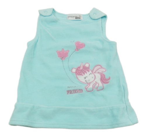 Svetlomodré zamatové na traké šaty s jednorožcom Ergee