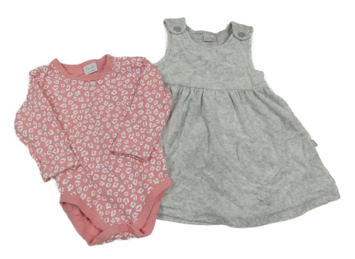 2Set - Svetlosivé melírované zamatové šaty + růžovo/bílé vzorované body Smile