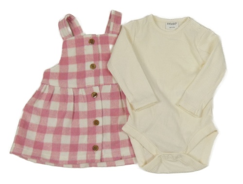 2set - Ružovo-biele kockované vlnené šaty + smotanové rebrované body