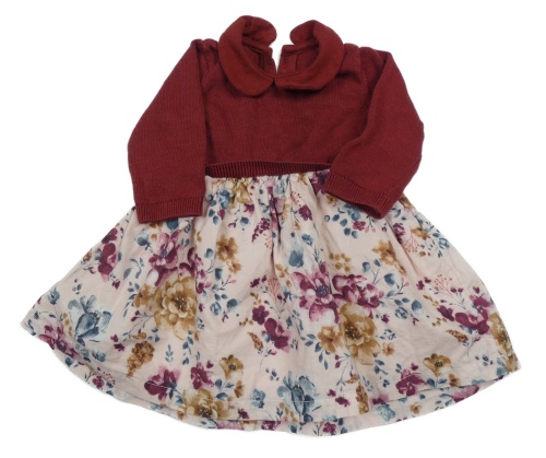 Vínovo-svetloružové svetrovo/plátěné šaty s kvietkami a golierikom Tu