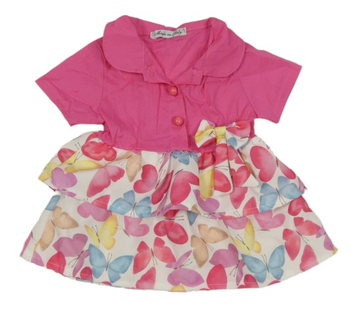 Bielo-tmavoružové šaty s motýlikmi a mašlou a golierikom