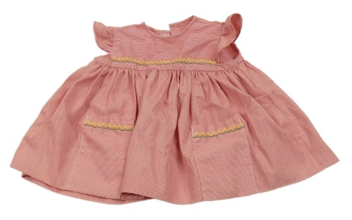 Červeno-biele pruhované plátenné šaty s výšivkou a volánikmi