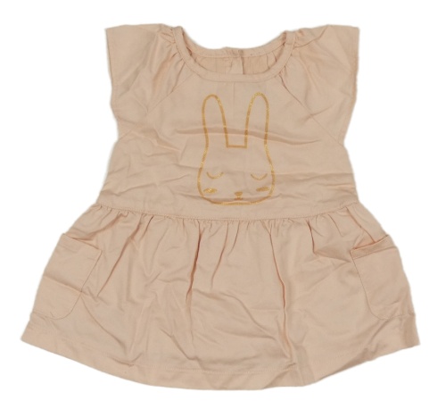 Broskvové plátenné balonové šaty so zajačikom Vertbaudet