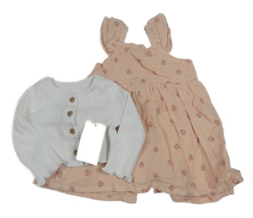 2set - Svetloružové kvetované mušelínové šaty + Biele rebrované bolerko Peacocks
