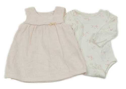 2 set - biele body s obrázky + svetloružové zamatové šaty M&S