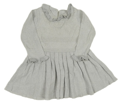 Svetlošedá -strieborné melírované plisované perforované svetrové šaty s volánikmi Matalan