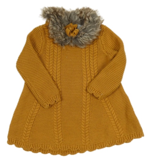 Medové svetrové šaty s kožušinovým golierom Tahari