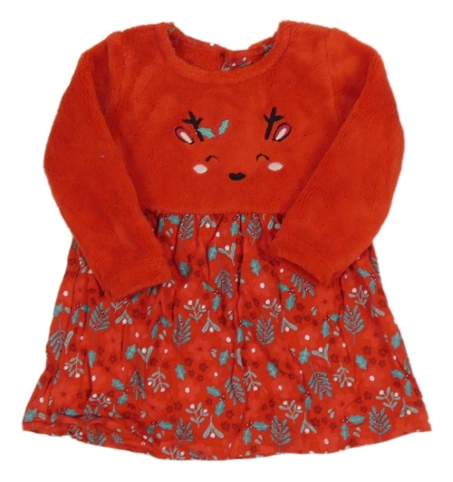 Červené chlupato/bavlněné šaty so sobom Dunnes