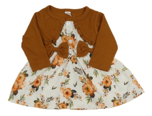 Smetanovo-hnedé kvetované šaty s bolerkom a mašľami Shein