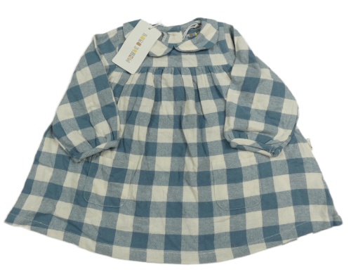 Nové - Modro-smotanové kockované flanelové šaty s golierikom