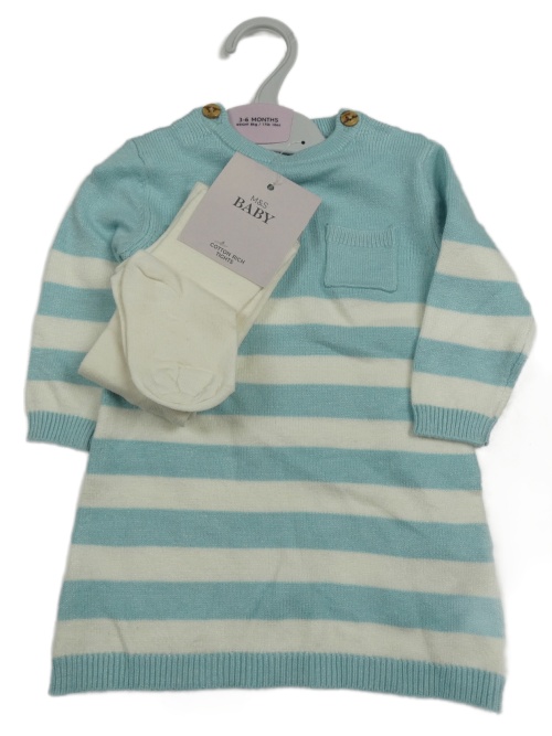 Nové - Světlemodro-biele pruhované pletené šaty + pančuchy M&S