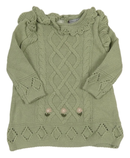 Zelené vzorované pletené šaty s volánikmi