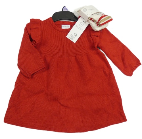 Nové - 2set - Červené pletené šaty s volánky + pančuchy F&F