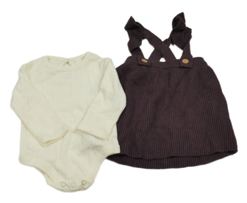 2set- -Nové Lilková pletená sukňa s kšandami+ smotanové body George