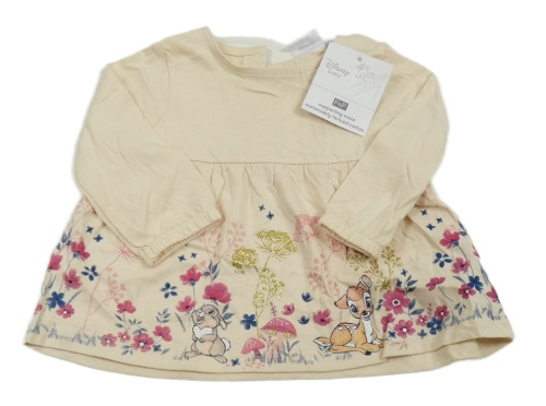 Nové - Béžová bavlnená šatová tunika s kvetmi a Bambim Disney