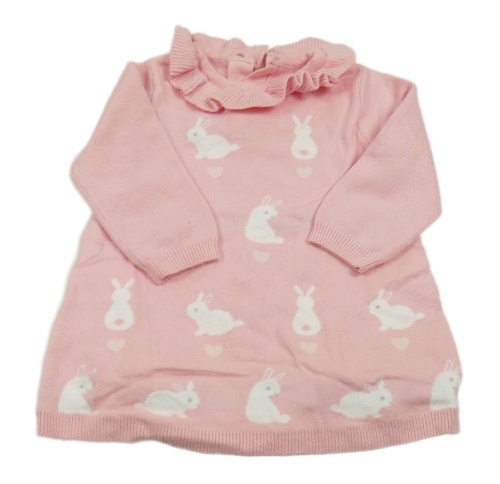 Ružové úpletové šaty s králíčky a volánikom Nutmeg