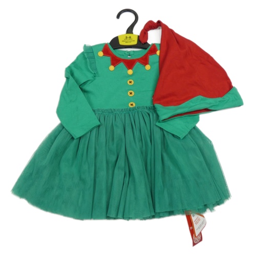 Nové - 2Set - Zelené bavlněno/tylové šaty - elfka + červeno/zelená čapica St. Bernard