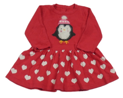 Malinovo-biele šaty so srdiečkami a tučňákem Matalan