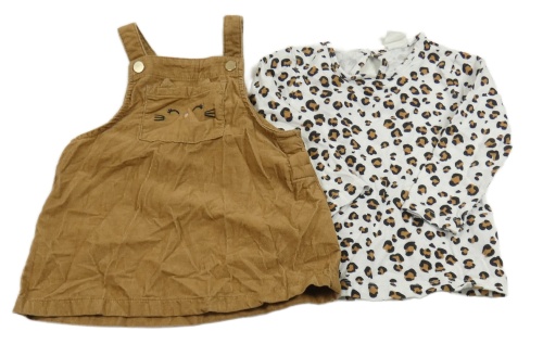 2set - Béžové menšestrové šaty s kočkou + biele tričko so vzorom H&M