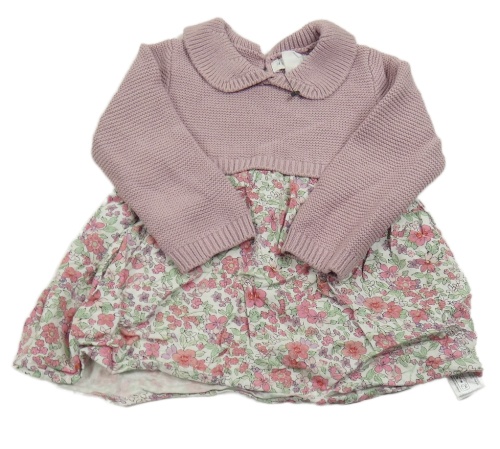 Starorůžovo-biele svetrovo/lehké šaty s kvetmi a golierikom Primark